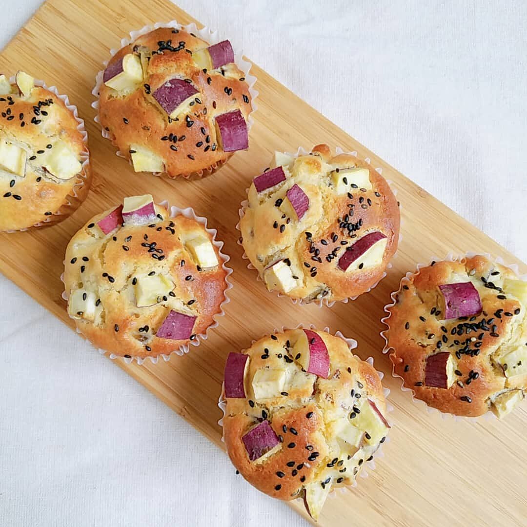 中もさつまいもごろごろ、おいしいマフィンでした。ちょっとさつまいもを茹でるところが面倒かもしれませんが、残ったさつまいももサラダや間食にできるので良いです。