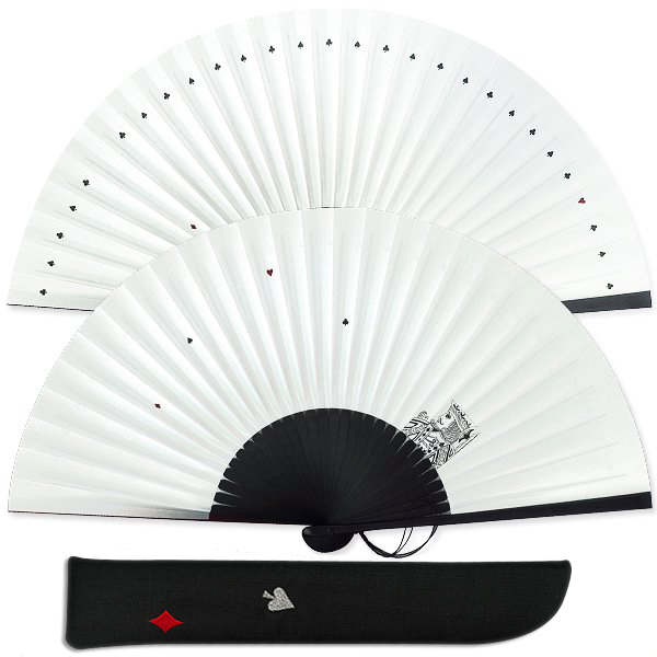 一つ一つ広げては閉じるなかで「ピン!」ときたのが、こちら。メインの絵柄はトランプの“クイーン”。そのまわりにトランプのマークがパラパラとあしらわれた、ハイカラで遊び心のある扇子です。